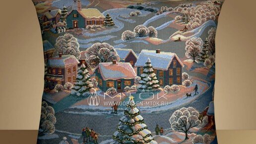 Декоративные подушки и гобеленовые наволочки с зимним декором – прекрасный вариант подарка на Новый год. Пара таких вещиц способна полностью преобразить интерьер, добавив в него особый колорит с нотками домашнего уюта и романтики. Идиллический зимний пейзаж станет прекрасным дополнением к обстановке как городской квартиры, так и загородного дома. Заснеженные деревья, маленькие домики со светящимися уютом окошками, высокие сугробы, окрашенные закатом в нежный розоватый тон, – пейзаж на этом чехле навевает мысли о счастливых днях, проведенных в гостях у бабушки на тихом хуторе...