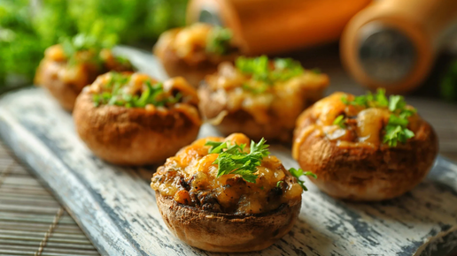 Горячие закуски — это настоящая находка для новогоднего стола! Они быстро исчезают с тарелок, поэтому стоит заранее подготовить несколько вариантов. Подбираем самые интересные! 1. Фаршированные грибы 🍄
