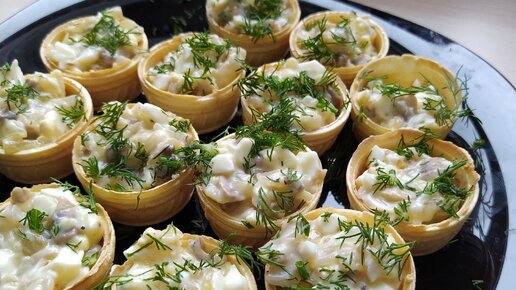 Скоро новый год, делюсь простой и вкусной закуской в тарталетках. Начинка из вареного яйца и жареных грибов очень вкусно сочетается, советую приготовить на праздничный стол.