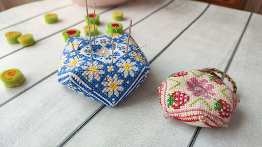 Когда я делаю фото мастер-классов по рукоделию, часто в кадре моя любимая игольница, про которую накопилось много ваших вопросов😀 Это идея французов, вышивать небольшие квадраты и сшивать их особым образом. Эта игольница - бискорню, что означает "неровный, неправильной формы, смешной, забавный" 😀👍 Русские мастерицы называют такие объемные вышитые вещички "кривульками". Бискорню - это подушечка, состоящая из двух одинаковых квадратов, вышитых и соединенных между собой, предварительно повернув их на 90 гр...