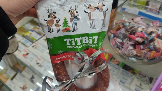 Зашли с Ёськой в "Четыре лапы" и удивились Новогодним наборам вкусняшек для собак