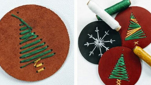 Возможно ли украсить новогоднюю елочку не обычными яркими шариками и мишурой, а непривычными для глаза кожаными украшениями? Как говорится, на вкус и цвет...Кроме непривычности есть два плюса -может получится очень стильно, и есть возможность привлечь детей к изготовлению игрушек, так как, как правило, они не сложны в изготовлении. Поэтому сегодня даю обзор елочных кожаных игрушек. Фото из открытых источников. Начнем с елочек. Можно сделать совершенно стимпанковую елку с заклепками, цепочками и...