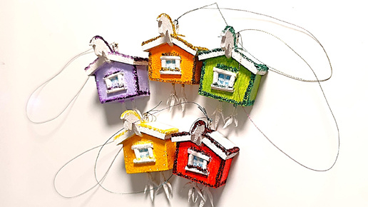 Новогодние игрушки – украшения I. Домик с ножками и коньком, на холодильник и на ёлку, своими руками.