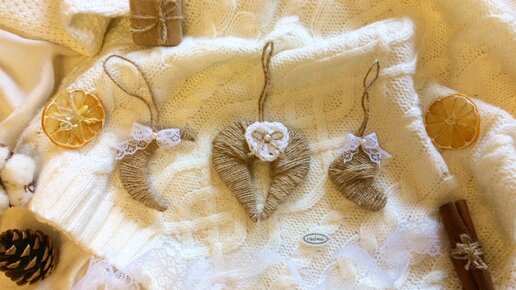 Елочные игрушки в стиле рустик из бичевки