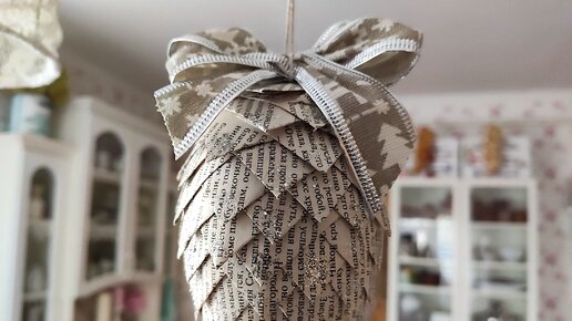 Новогодние игрушки своими руками - это очень оригинально, интересно и креативно. Они ничуть не уступают купленным блестящим шарам. И необязательно вешать их на елку. Эта винтажная шишка, сделанная с душой, уже отдельное украшение. Она привлекает взгляд и внимание своим видом. И также поблескивает при свете лампы. У меня она подвешена к люстре на кухне и хочется все время смотреть на нее. Шишку можно сделать любого размера...