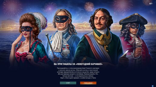 С сегодняшнего дня и до 17 января в Мире кораблей проходит новогодний карнавал. Это группа БЗ разделенных на территории. Выполните - получите новогодние жетоны. На что их потратить? Бесплатных жетонов хватит только на 16 дней према или 2 контейнера "Дальние странствия", откуда могут выпасть рандомные премофляжи.