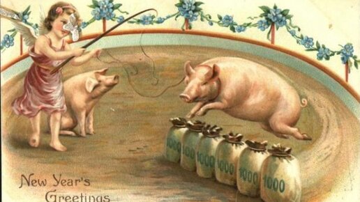 Находка: старые новогодние открытки со свинками