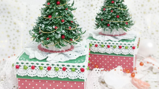 Коробочки оформлены большим количеством декора, который сделан с нуля из разных материалов. 1. Коробочка с елочкой из шишек 2. Коробочка с цветочной елочкой и пожеланиями 3...