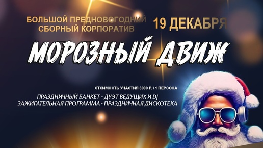🎄 Новогодний корпоратив «Морозный движ» 🎊 ✨ В парк-отеле «Волжский прибой» 🔥 Отдохните на полную катушку! Эй, ребята! 😉 Если вы хотите, чтобы ваш новогодний корпоратив был таким же крутым, как ваша команда, то держитесь крепче – мы отправляемся на «Морозный движ» в парк-отель «Волжский прибой»! 📅 19 декабря, стартуем в 19:00 💸 Стоимость...