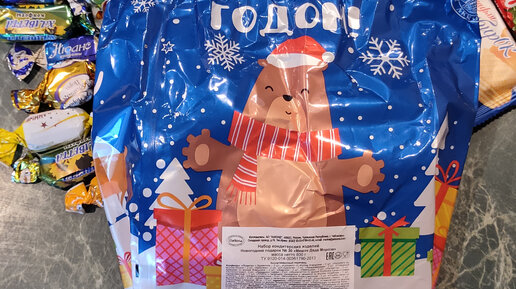 Полка магазина4 года назадПодписатьсяКупил почти даром в "Магните" новогодний подарок "Мешок Деда Мороза". Показываю что внутри