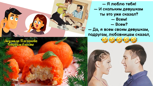 Влюбленная парочка ужинает в ресторане. Они буквально пожирают друг друга глазами и млеют друг от друга: — Ты такая сладкая, я бы съел тебя всю… — И я тоже… Ожидающий официант: — Запивать чем-нибудь будете? /анекдот для хорошего настроения/ Ну какой же Новый год без мандаринов?! Они обязательно должны быть на новогоднем столе! Поэтому давайте сделаем очень простую в приготовлении, и конечно же, невероятно вкусную закуску в виде «мандаринок» 🔥 А чтобы приготовление еды не было скучным, в...