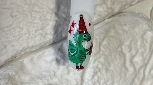 Наступает год зеленого дракона. Многие мои клиенты, даже те, кто обычно делает маникюр без дизайна, в Новый год выбирают мультяшные дизайны с символом года. Сегодня на меня напало вдохновение. И захотелось нарисовать что то простое и милое. Я не претендую на звание художника, а просто делюсь идеей. А исполнение у каждого будет в своем неповторимом стиле. Итак, начнем. Для фона я выбрала обычный белый гель лак. Но я думаю, что он будет хорошо смотреться на любом светлом оттенке. Любой рисунок начинается с подмалевка...