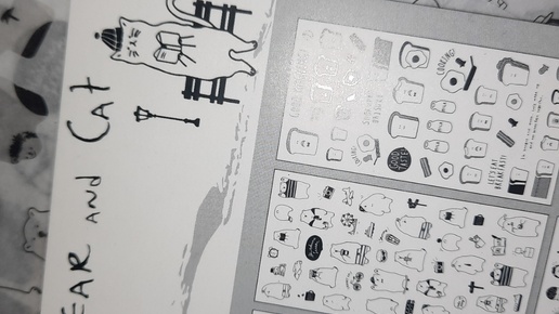 Создать настроение можно даже с помощью простых наклеек! Цветное "наклеечное" настроение Мурыся уже показала, покажем с ней черно-белое! Наклеек у нас был набор. Пингвины, Медведи, Ежики, и кошки.