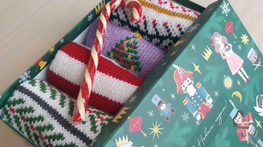 Большой новогодний подарочный набор вязаных носков RussianSocks ручной работы В этот замечательный набор входят четыре пары носочков: пушистые лавандовые с елочкой, полосатые красно-белые, похожие на новогодний леденец-тросточку и две пары носочков с еловыми веточками...