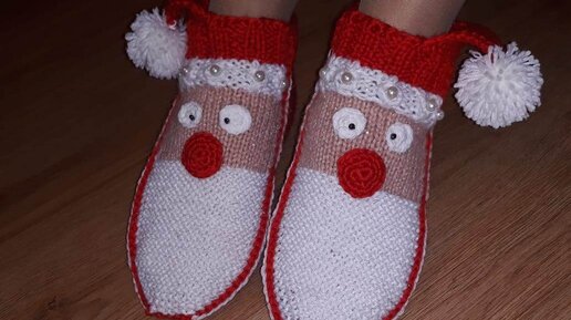 Красивые Новогодние носочки следочки "Красный нос" 2 спицами. Подарок своими руками