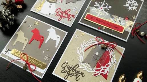 Привет-привет, с вами снова Лада Мусина. Рецепт моих быстрых новогодних открыток - никакой скрапбумаги, только плотный дизкартон в праздничной палитре, металлические подвески и вырубка ножами Мимикат. Любимый формат 10х10, традиционные зимние истории, блеск перламутра и золота - остановиться практически невозможно! В работе над открытками использовала зимне-новогодние...
