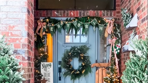 Сегодня — не просто обзор, а настоящая «коллекция идей» от садоводов и декораторов. Мы собрали лучшие примеры зимнего оформления приусадебных пространств: от двери с венком до фонариков в сугробах. Всё — с реальными историями, проверенными приёмами и, самое главное, доступными решениями даже при скромном бюджете. Этот вход в дом стал настоящим хитом: кирпичный фасад, дверь серо- голубого цвета, гирлянды из свежесрезанных еловых ветвей и венок с шишками, игрушками, флажками и натуральной хвоей....