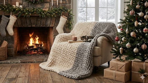 Вязаный уют в интерьере: Пледы и подушки, которые мгновенно создадут новогоднее настроение 🎄