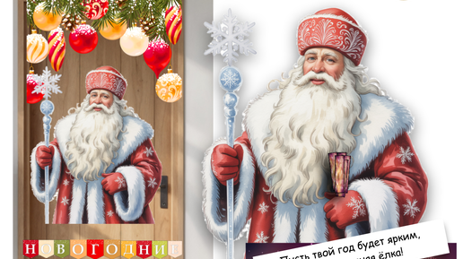 Оформление на дверь к Новому году «Новогодние пожелания». Новогоднее оформление класса создаёт праздничное настроение. Можно ли его сделать ещё более необычным? Да, если добавить возможность получать новогодние пожелания из рук Деда Мороза. При этом количество подходов за пожеланиями к Деду Морозу неограниченно. Данное новогоднее оформление удобно разместить на двери. Оформление состоит из: декоративного баннера для верхней части двери; плаката с изображением Деда Мороза, в руке Деда Мороза размещаются...