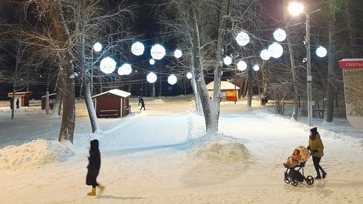 Новогодняя ночь в Сыктывкаре. Красивая ёлка, весёлый дед мороз со снегурочкой
