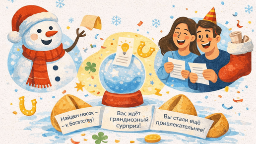 Новогодние предсказания - это простой и очень тёплый способ добавить в новогодний вечер ощущение ожидания и радости. Предсказания вызывают улыбки близких, их читают вслух, обсуждают, смеются. Мы подготовили новогодние предсказания в виде готового набора. Скачивайте его со страницы нашего сайта с предсказаниями. В предсказаниях нет резких формулировок или спорных смыслов: только добрый юмор, нейтральные пожелания и формулировки, которые подойдут любому человеку независимо от возраста. Предсказания...