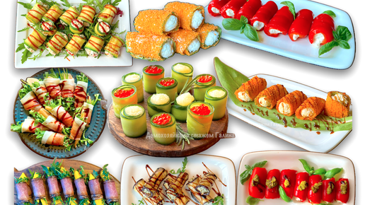 Подборка рулетиков на любой вкус! Такие закуски непременно займут почётное место на вашем праздничном столе. На моих столах они давно пользуются большим спросом. Есть удобно, выглядят аппетитно, а о вкусе и говорить нечего. Рулетики с хамоном и грушей рецепт Рулетики из кабачков Состав: Цукини - 2 шт. Курица-гриль - 150 г Творожный сыр - 100-150 г Яйца - 1 шт. Перец сладкий - 1/2 шт Кинза - по вкусу Чеснок сушеный - по вкусу Соль и перец - по вкусу Соус унаги - по вкусу рецепт Рулетики из огурцов...