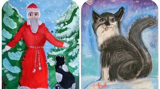 В художественной студии, где занимаются Алина и Аня, полным ходом создаётся новогодняя атмосфера! Не могу не поделиться с дорогими гостями канала этой искренней детской красотой. 😊 Алина - автор рисунка "Долгожданный Дедушка Мороз" (гуашь)...