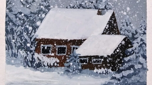 Снеговик гуашью. Рисуем новогоднюю картину.