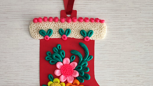 Новогодний сапожок из пластилина на цветном картоне. Пошаговая инструкция с фото для детей.