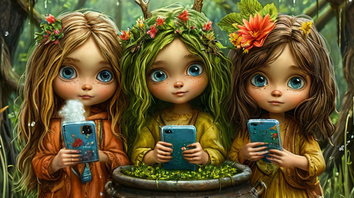 Кикимора 1. Добрый вечер, пользователи соц.сетей! Кикимора 2. Здравствуйте, любители прикольных видео и новых контентов. Кикимора 3. Приготовьте ваши смартфоны. Все. Вас приветствуют Кикиморы - блогерши. Начинаем прямой эфир. Кикимора 1. Мой блог самый красивый, потому что я - бьюти-блогерша. Хайлайтер, консилер, кушон - для вас это пустой звук? Заходите ко мне на канал, и вы узнаете всё о новогодней бьюти-процедуре пиявками. Кикимора 2. Мой блог самый вкусный - перед вами кулинарный гуру. Вы спрашиваете,...