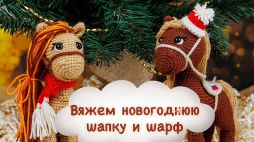 Как связать новогоднюю шапочку и шарфик для лошадки