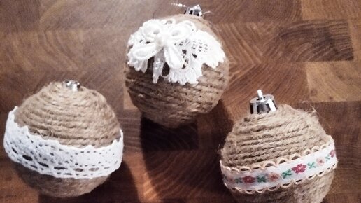 Новогодние шары из джута. 4 идеи, как сделать елочную игрушку неповторимой
