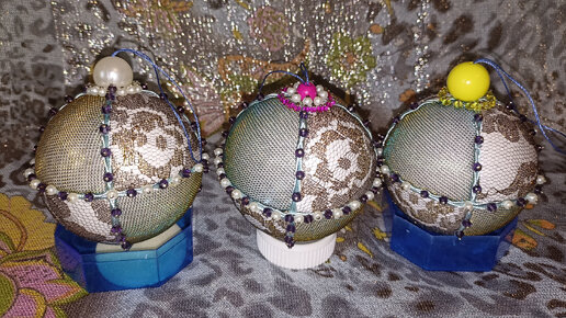Новогодние шарики своими руками, из пенопластовых шаров и ткани. Описание