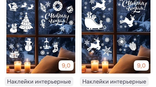 Наклейки на окна новогодние! В акции участвует любой дизайн из этой склейки, не только те что на фото (фото просто для примера, дизайн карточки одинаковый) Можете выбрать любой дизайн. 🔥 Кэшбек - 300 рублей...
