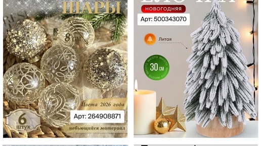 Новый год — это время, когда дом превращается в пространство света, добра и особенной теплоты. Именно детали делают атмосферу по-настоящему праздничной: мерцание гирлянд, сияние стеклянных шаров, мягкое свечное свечение, декоративные ёлочки, аромат хвои и уют. В этой подборке — лучшие сезонные находки с WB, показанные на ваших фото. Каждую рассмотрим внимательно: разберём особенности, настроение, материалы и лучшие сочетания. Артикул: 264908871 Светящиеся, мерцающие, многогранные — этот набор шаров создан для тех, кто ценит элегантность...