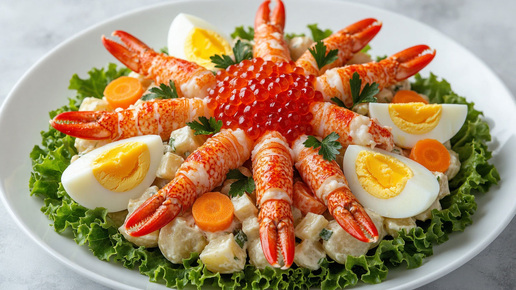 Привет, дорогие гурманы. Подготавливайте заметки и блокноты, чтобы переписать себе уникальные рецепты, которые урасят ваш новогодний стол изобилием салатов. Они точно станут вашей основной закуской на праздничном столе. Итак поехали. 1. Не просто Оливье, а Оливье с раковыми шейками и красной икрой. Итак основные ингредиенты у него останутся прежними за исключением варёной колбасы, Вместо неё мы добавим нежные мягкие раковые шейки, а верхужку украшаем слоем красной икры. Зелёный горошек, картофель,...