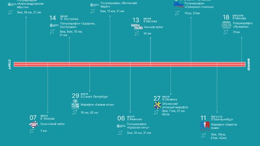 Наша команда подготовила подборку шоссейных стартов на различные дистанции. Подборка составлена на основе нашего личного опыта участия в различных забегах. Мы выбрали старты, на которые хочется возвращаться и которые с удовольствием посетим в этом году. Представлены старты на которые уже открыта регистрация или анонсированы даты проведения. Не затягивайте с регистрацией, места заканчиваются быстро. 28 января 55-й международный марафон "Дорога жизни" г. Санкт-Петербург Дистанции: 10км, 42 км 07 апреля Марафон "Сириус Автодром", г...