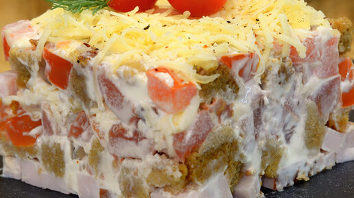✅ Просто попробуйте один раз приготовить салат по этому рецепту и даю вам гарантию этот салат будет на вашем столе каждый раз!!! В свое время я перебрала множество рецептов на основе сухариков, этот рецепт с небольшими корректировками оказался самым удачным. За счёт сухариков салат получается очень сытный, а если использовать сухарики с различными вкусами (с сыром, беконом, холодец), то можно сделать его более пикантным. Это без преувеличения лучшая закуска для застолья! Ингредиенты для «Салат с...