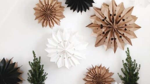 Новогодние поделки 🎄 Покажу как сделать оригинальные украшения из крафт бумаги за пару минут.