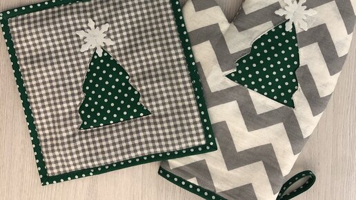 Варежка-прихватка + прихватка с новогодней аппликацией, своими руками.