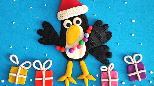 Лепим из пластилина " Новогоднюю ворону". Аппликация. Пошаговая инструкция по фото для детей.