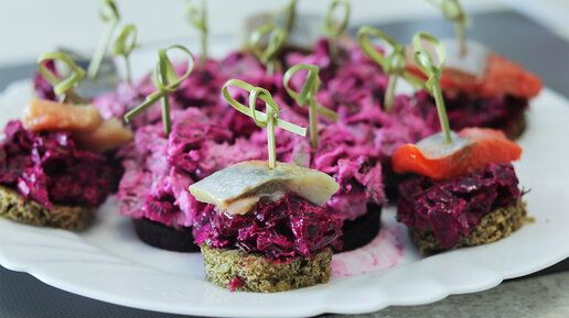 Селедка на свёкле (бутерброды). Марафон новогодних закусок 2025.