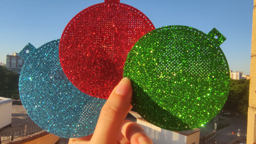 Красный 🔴, синий 🔵 и зелёный 💚. Новогодние шарики для вышивки крестом