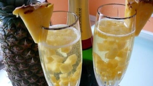Три варианта приготовления: 1 рецепт Ананасы в шампанском: Аккуратно очищаем спелый ананас, а после нарезаем его на небольшие красивые кубики. Выкладываем нарезанные ананасы в крюшонницу (у кого есть, а у кого нет, могут просто взять любую подходящую посуду). Откупориваем бутылку шампанского (я брала полусладкое, потому что люблю его больше всего) и очень осторожно заливаем ананасы. Накрываем крюшонницу и даем настояться пятнадцать минут. На стол этот коктейль-десерт подается в широких больших бокалах вместе с чайными ложечками...