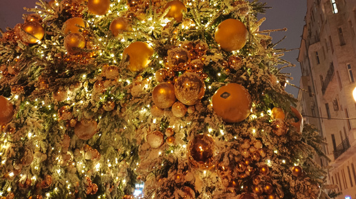 Каждый год Арбат наряжают в разной тематике: в 2024 в стиле под Дракона,в 2025 под Змею,а в этом,2026 году нарядили все в мандаринках,похоже под Чебурашку...