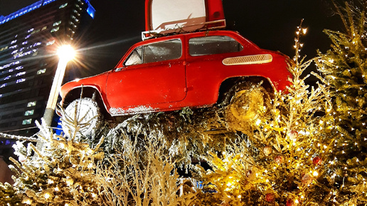 Новогодняя Москва 2025. Прогулка по Арбату. «Вязаный» Старый и летающие ретроавто Нового... или чем удивили нас Арбаты)))