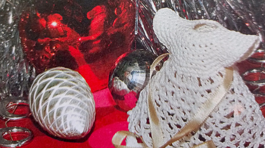 Схемы и описания вязания крючком на новогоднюю ёлку: башмачок, платьице, веер двух видов, рукавичка