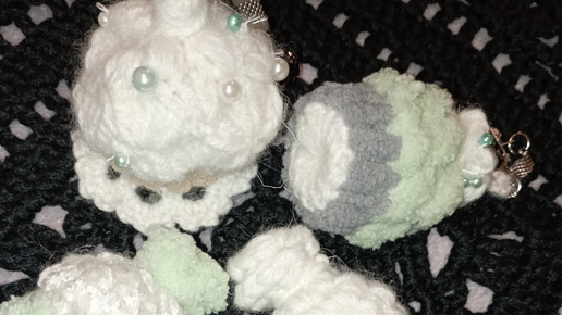 Здравствуйте, дорогие друзья! Наверное у каждого дома есть немного остатков пряжи, да в таких мизерных количествах, что ничего путëвого из них не свяжешь. Вот и у меня таких клубочков, а иногда и просто отрезков нитей, полно. Эти остатки я пустила в дело. Шаг 1 Для начала я взяла плотную втулку, разрезала ее и обмотала остатками пряжи. Получился бисквит, сам кексик. Шаг 2 Для изготовления кексика нужно обвязать деталь бисквита пышным элементом имитирующим взбитые сливки. На пике связала петельку для крепления к карабину...
