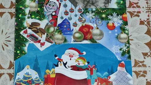Новогодняя открытка в стиле скрапбукинга из рекламных буклетов и газет