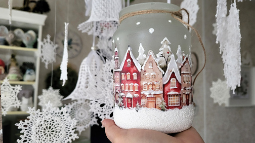 Делаю СКАЗОЧНО красивые ФОНАРИКИ-светильники из стеклянной БАНКИ - Новогодний ДЕКОР своими руками